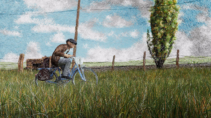 ある年老いた男性が自転車に乗って旅に出る。